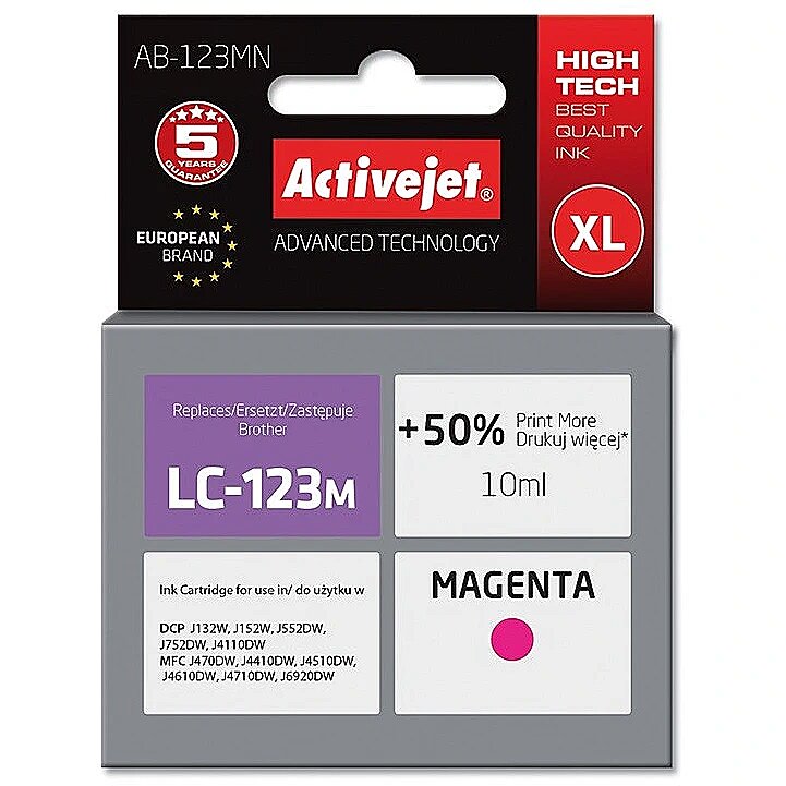 ActiveJet AB-123MN (zamiennik Brother LC123M/121M; Supreme; 10 ml; purpurowy) AB-123MN 5901443020561 Apraksts un cena šeit