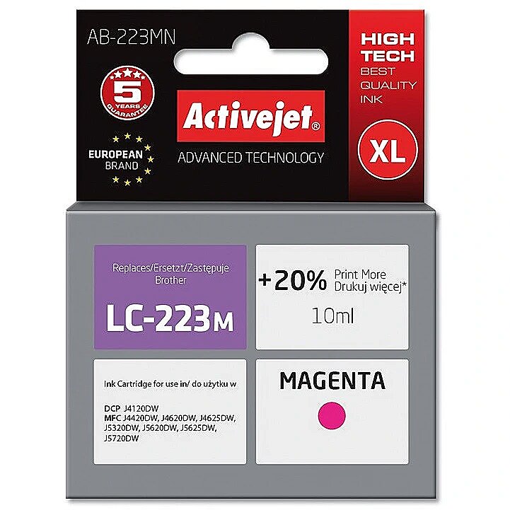 ActiveJet AB-223MN (zamiennik Brother LC223M; Supreme; 10 ml; purpurowy) AB-223MN 5901443098614 Apraksts un cena šeit