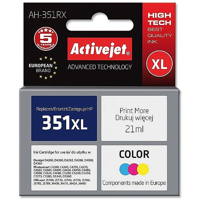 ActiveJet Ink Cartridge AH-351RX for HP Printer, Compatible with HP 351XL CB338EE; Premium; 21 ml; colour. AH-351RX 5901452125257
