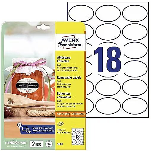 Avery Avery ZwckformOwalne etykiety 63,5 x 42,3 mm 5087 4004182050873