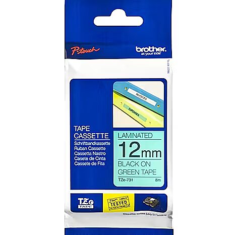 Brother Tape Brother 12mm BLACK ON GREEN TZe731 4977766691352