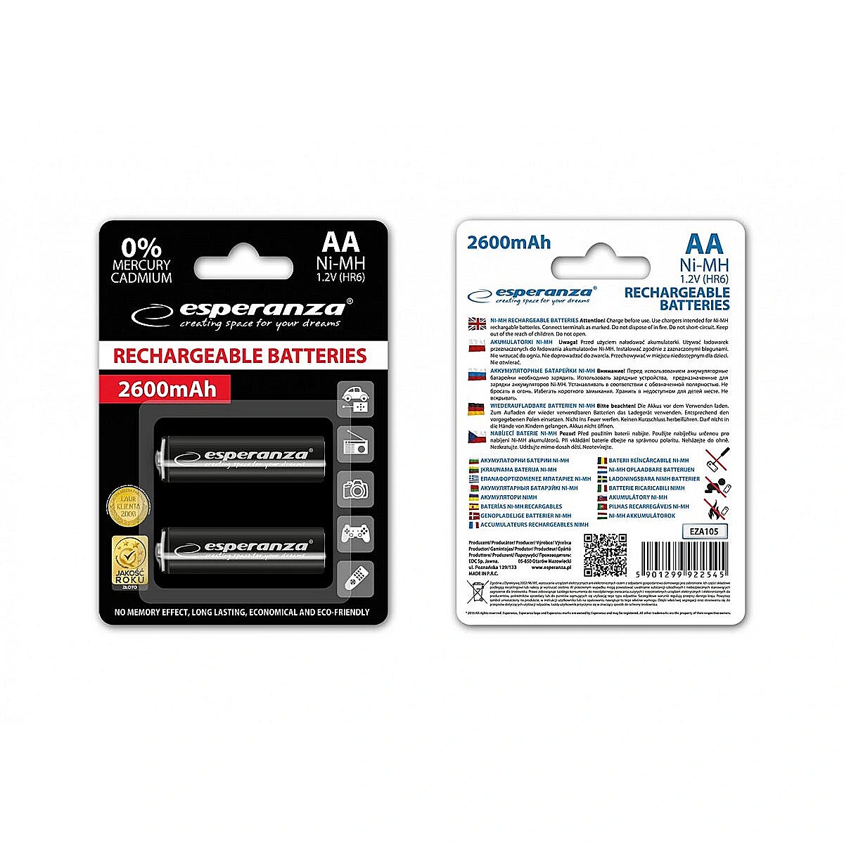 Esperanza Rechargeable AA 2600mAh, x2 EZA105 5901299922545