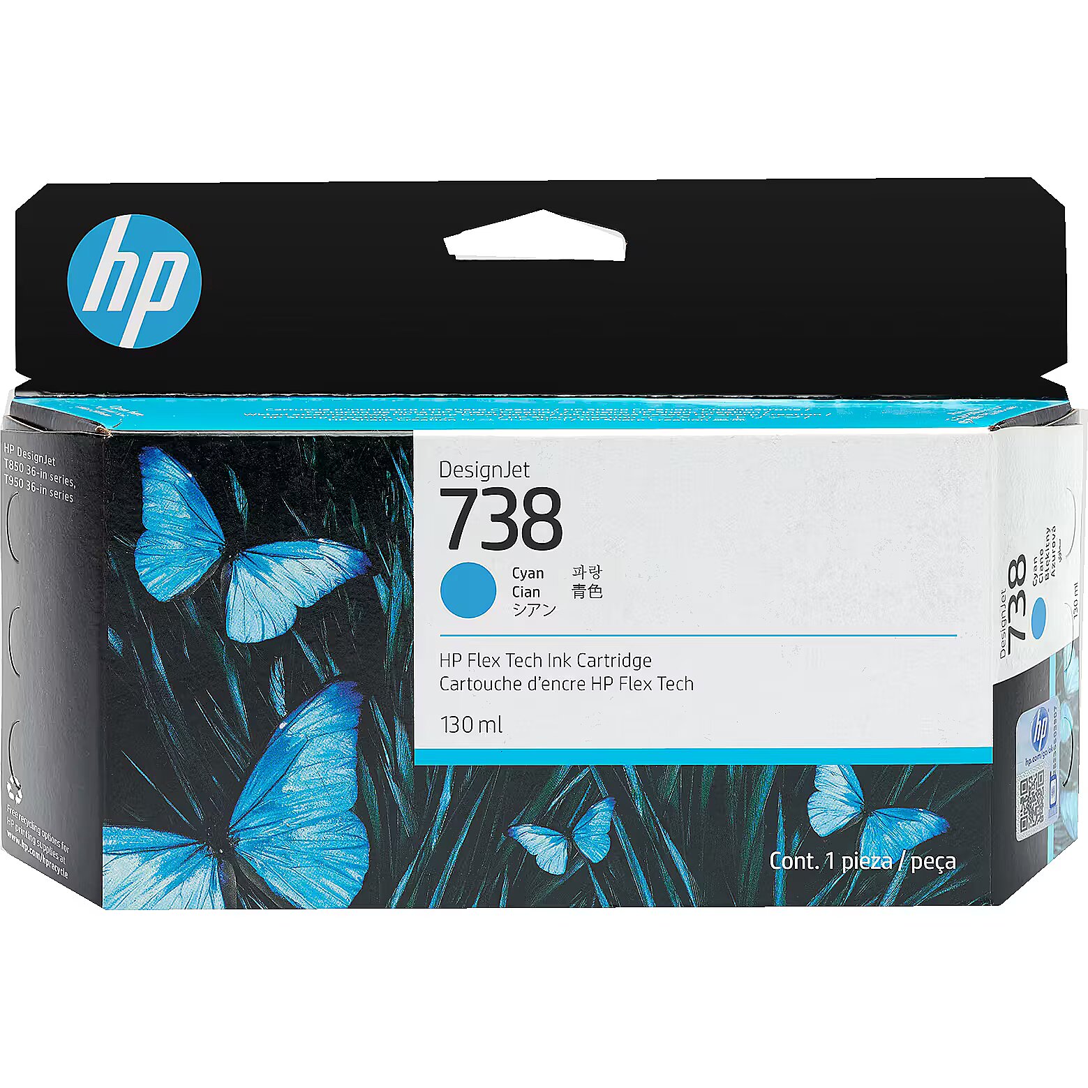Hewlett Packard 738 130-ML CYAN DESIGNJET INK CARTRIDGE 498N5A 0196068358860