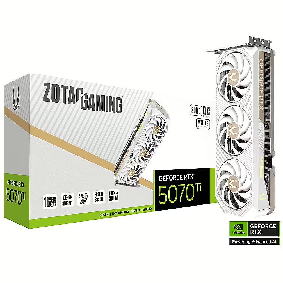 Zotac GeForce RTX 5070 Ti, 16GB GDDR7, SOLID CORE OC White Edition (DLSS 4) ZT-B50710Q2-10P 8886307700810